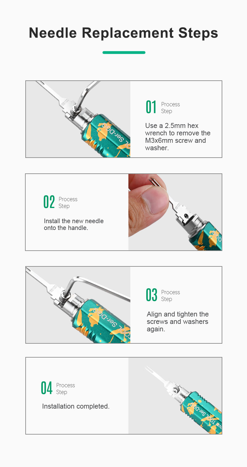 2. Interchangeable replacement tips with same specifications