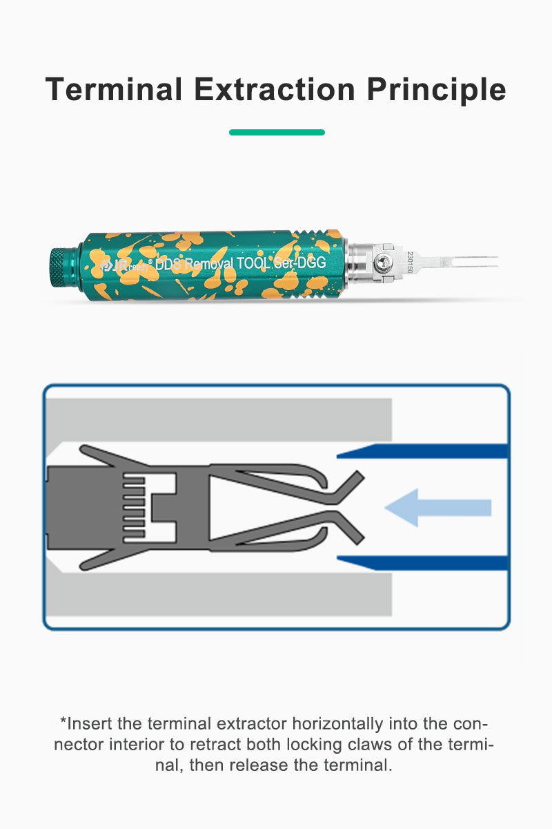 | Category | JRDDS Series Terminal Extraction Tool | Colour | Dark Green / Gold |