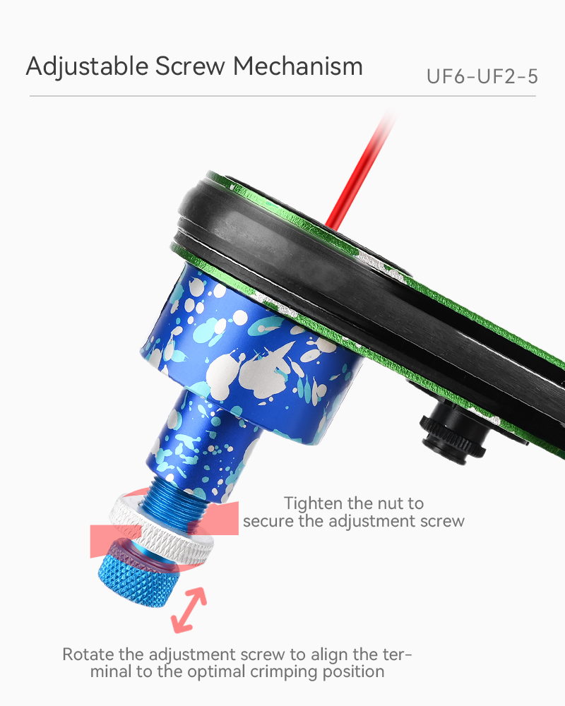 2、Adjustable screw mechanism to accommodate positioning of various terminals