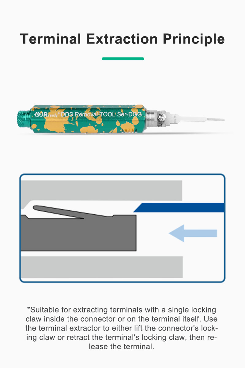 | Category | JRDDS Series Terminal Extraction Tool | Colour | Dark Green/Gold |
