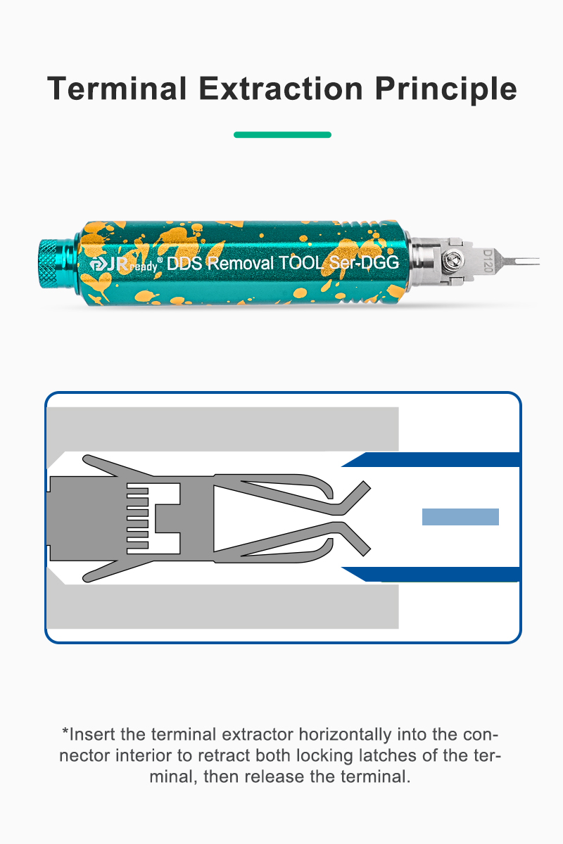 | Category | JRDDS Series Terminal Extraction Tool | Colour | Dark Green/Gold |