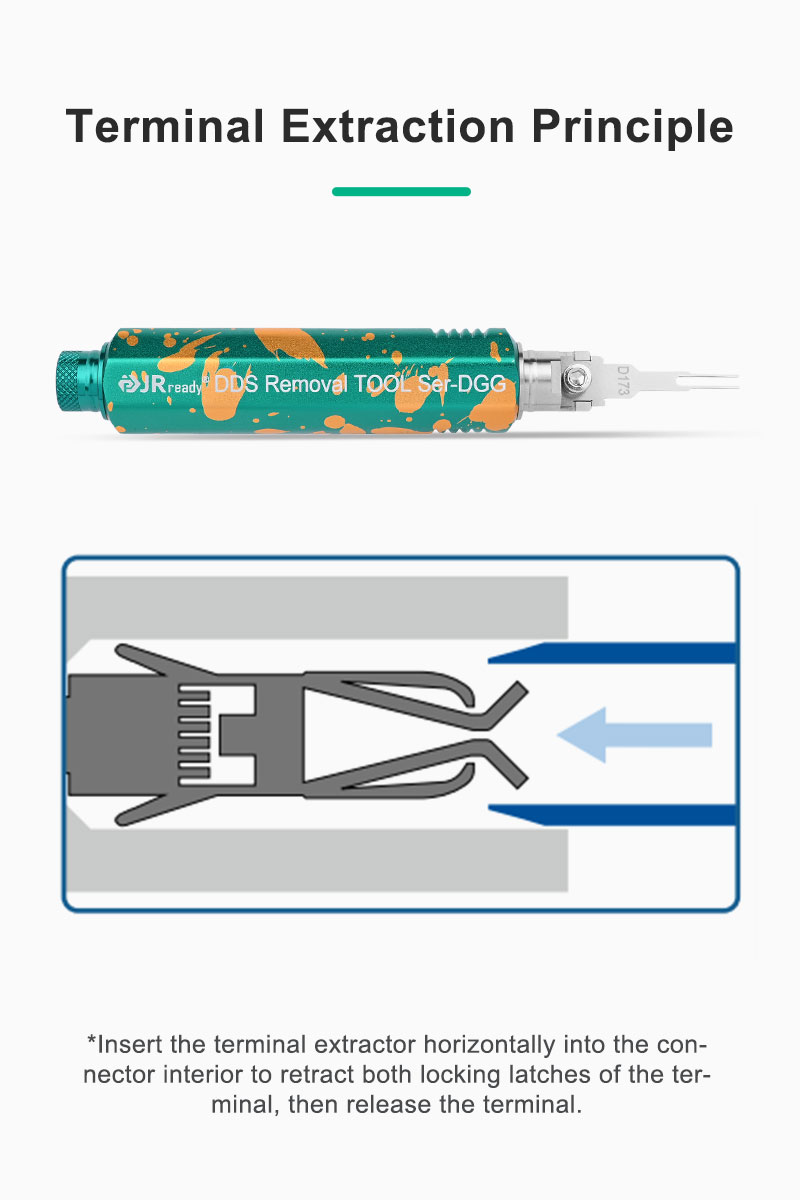 | Category | JRDDS Series Terminal Extraction Tool | Colour | Dark Green/Gold |