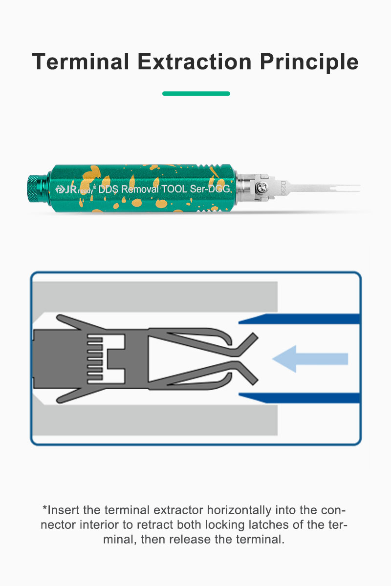 | Category | JRDDS Series Terminal Extraction Tool | Colour | Dark Green/Gold |