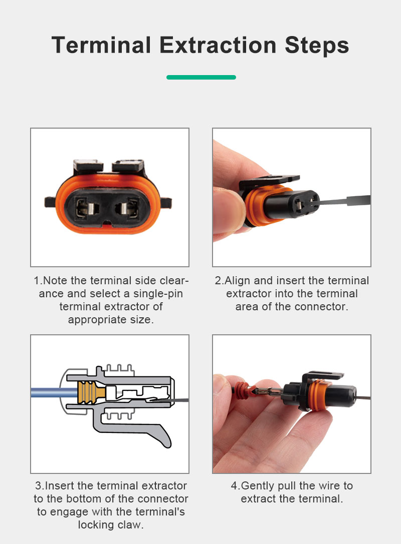 4. Suitable for Delphi Metri-Pack 280/480/630/800 series and other large single-spring terminals