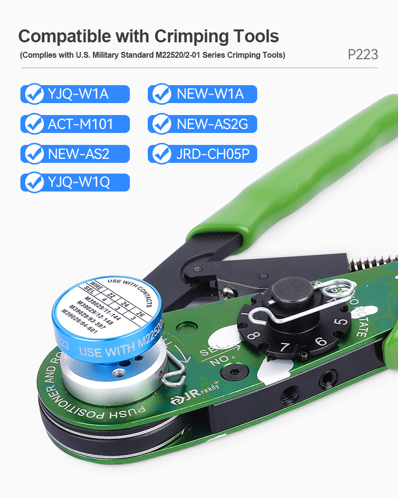 2.Compatible with NEW-AS2, YJQ-W1A, ACT-M101, YJQ-W1Q crimping tools; supports M22520/2-01 series crimping tools.