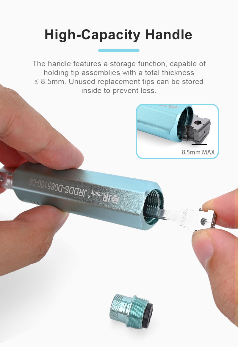 2. Storage function for flat blade replacement tips (total thickness ≤8.5mm)