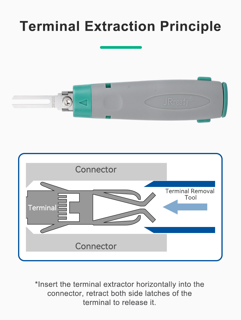 | Category | JRconDRK Series Terminal Extraction Tool | Colour | Green/Gray |