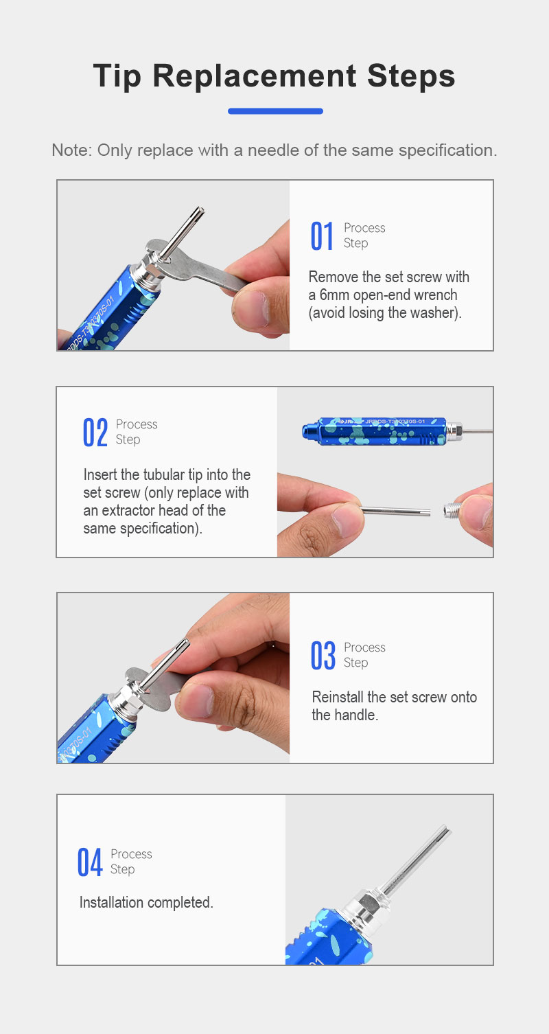 3. Interchangeable replacement tips with same specifications